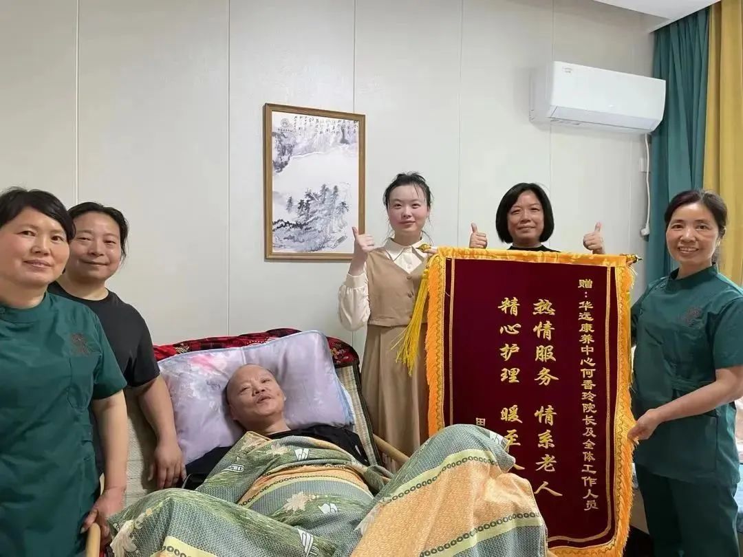 看到父親開(kāi)朗的笑顏、從消瘦到有肉肉的身體、逐漸穩(wěn)定的血糖和血壓,作為女兒的小田的也慢慢覺(jué)得放心和慶幸。放心的把父親放在華遠(yuǎn)康養(yǎng)中心照料,慶幸自己當(dāng)初的選擇沒(méi)有錯(cuò)。于是在天朗氣清的四月,她帶著一面紅彤彤的錦旗敲響了院長(zhǎng)辦公室的門。