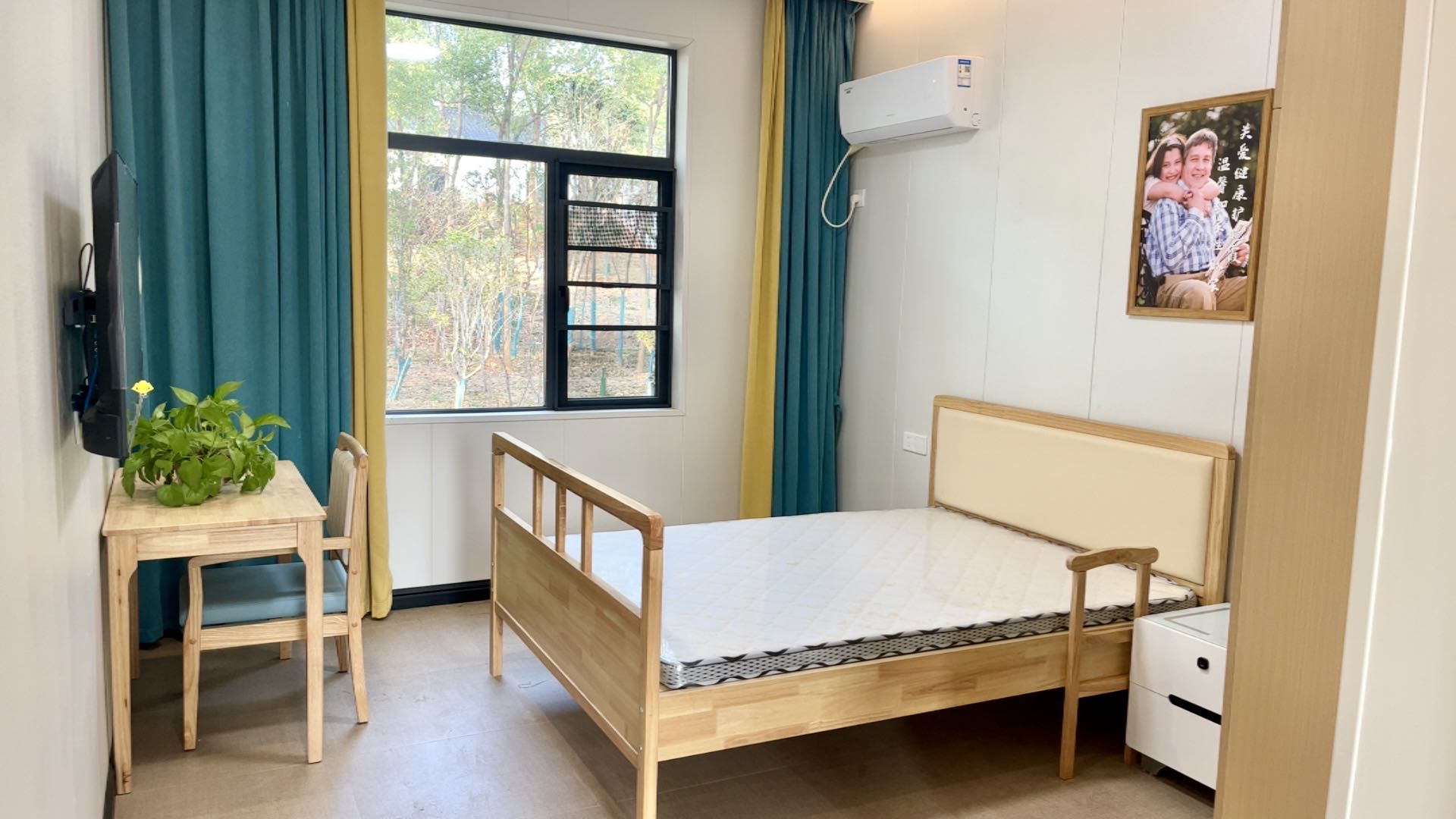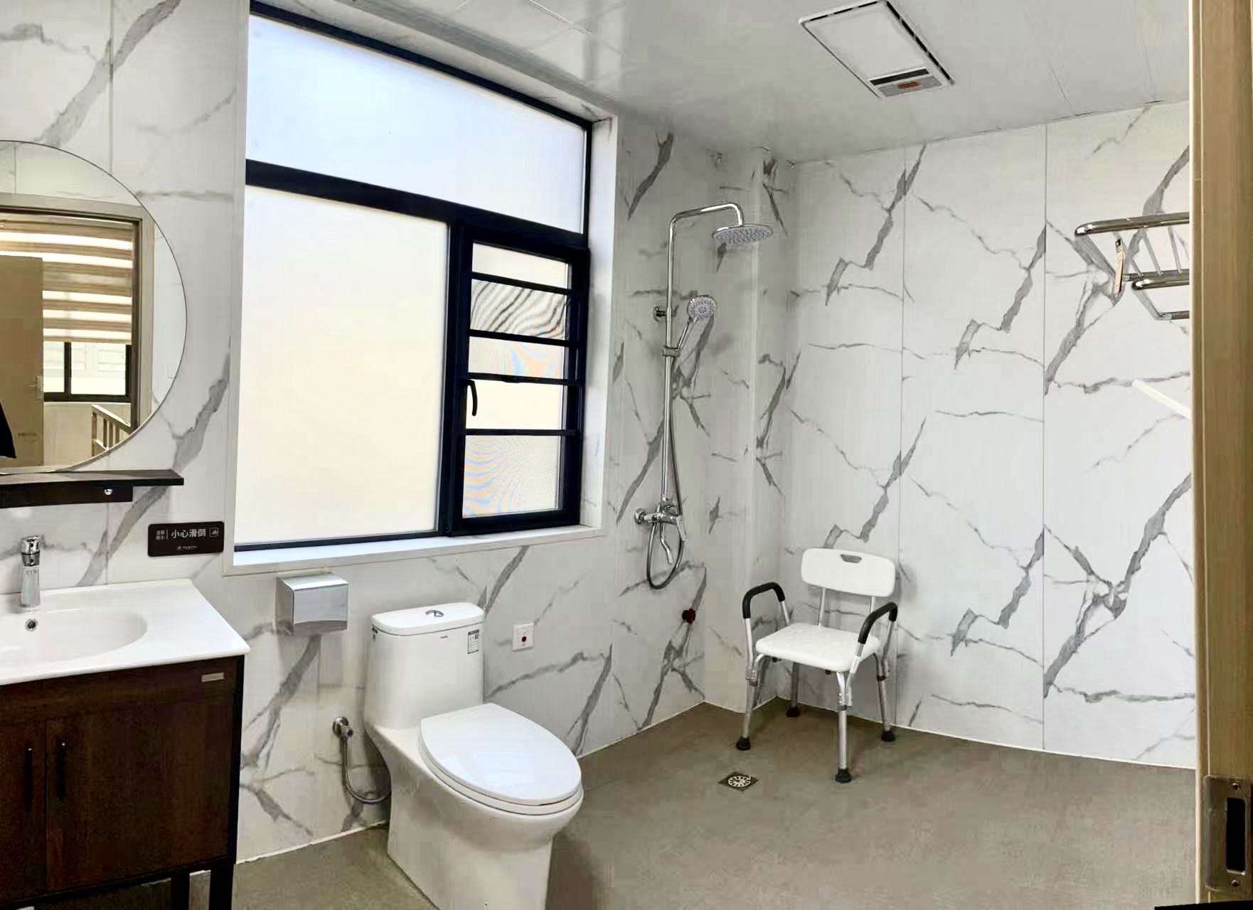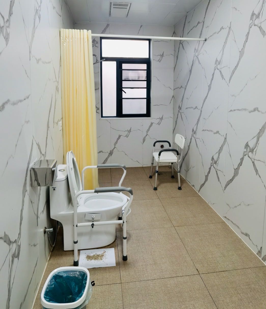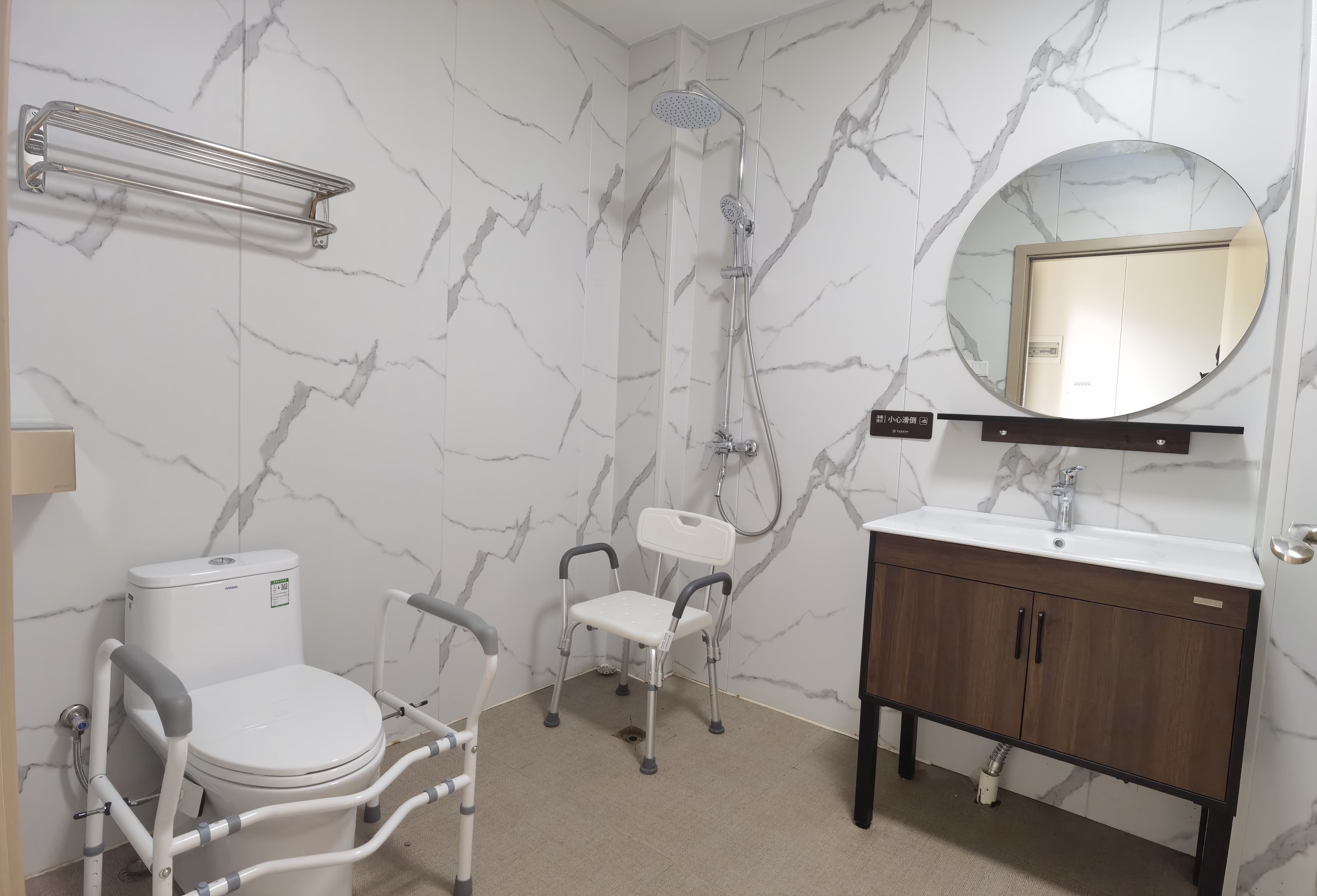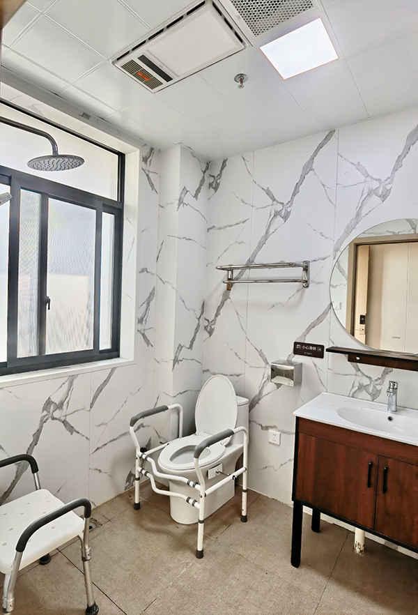 衛(wèi)生間的馬桶配有防護設施,能保證長者的安全,房間其他配套設施齊全,就像自己的家一樣溫馨。